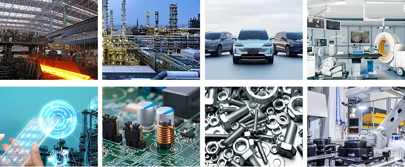 Kami kini telah menjalin perkongsian meluas dengan pelanggan merentasi pelbagai industri, termasuk keluli, kimia, automotif, perubatan, komunikasi, elektronik, perkakasan, pembuatan jentera, tenaga baharu, makanan dan minuman, perabot dan pembungkusan.