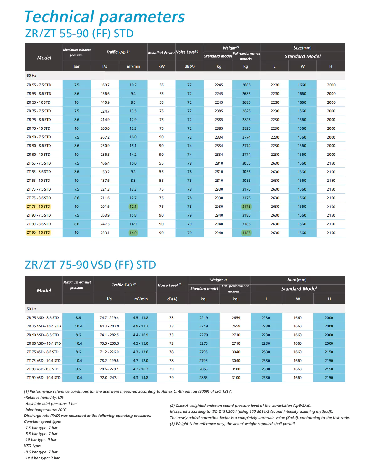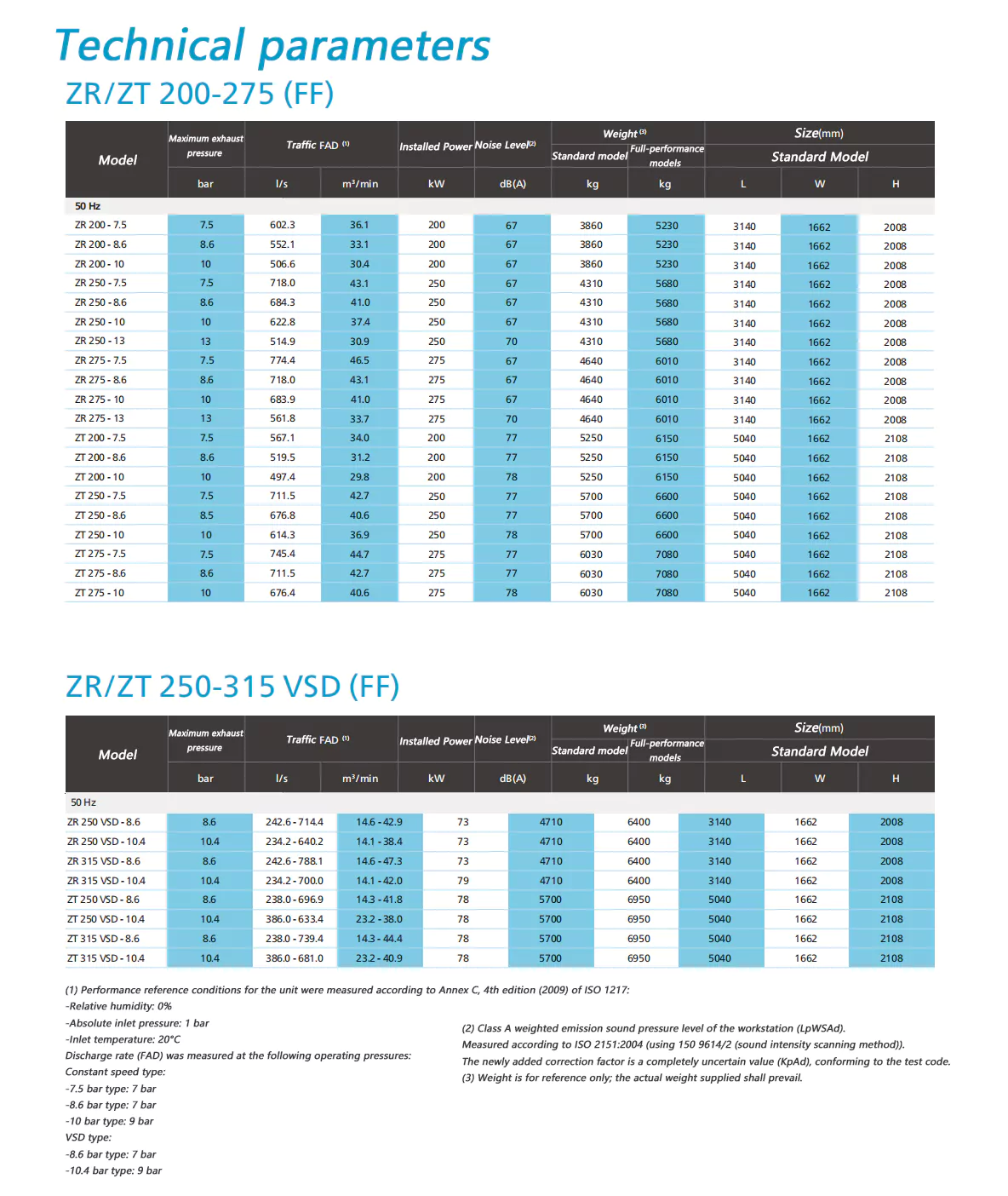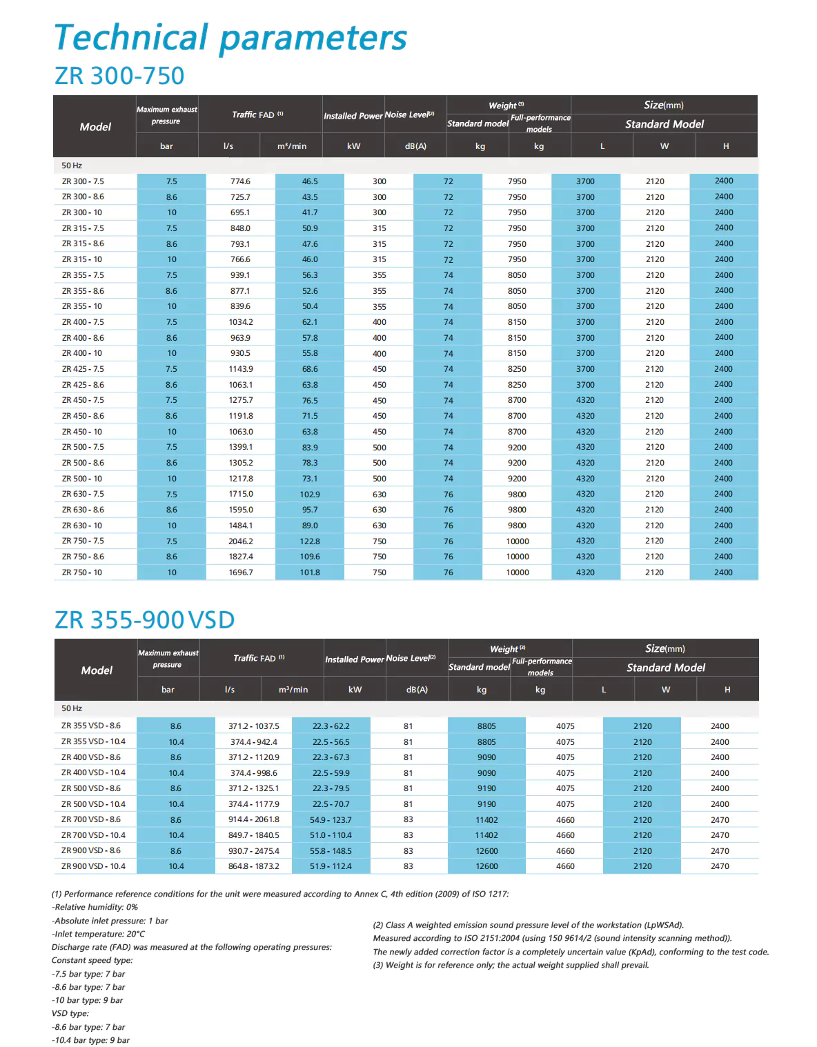 Teknologi skru bebas minyak Z matang, model sejukan air ZR