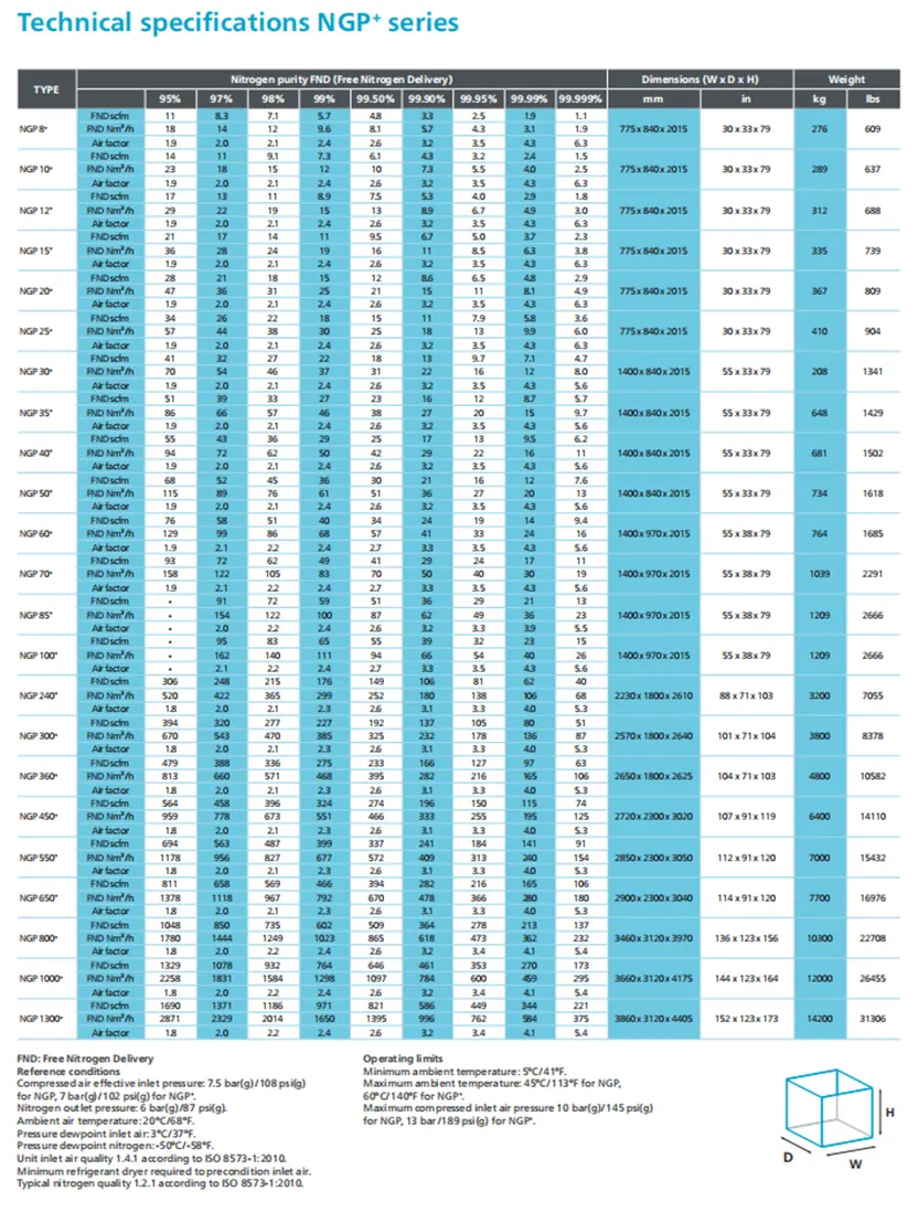 NGP Pressure Swing Adsorption Nitrogen Generator menawarkan daripada 95% hingga 99% ketulenan nitrogen untuk memenuhi keperluan kualiti anda.