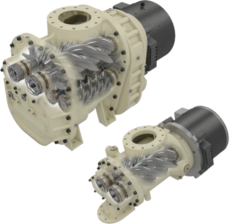 Airend tunggal dan dua peringkat bertaraf dunia (dua peringkat tersedia bermula pada 90 kW), bersama-sama dengan aruhan TEFC atau motor kelajuan boleh ubah pilihan meminimumkan penggunaan tenaga.