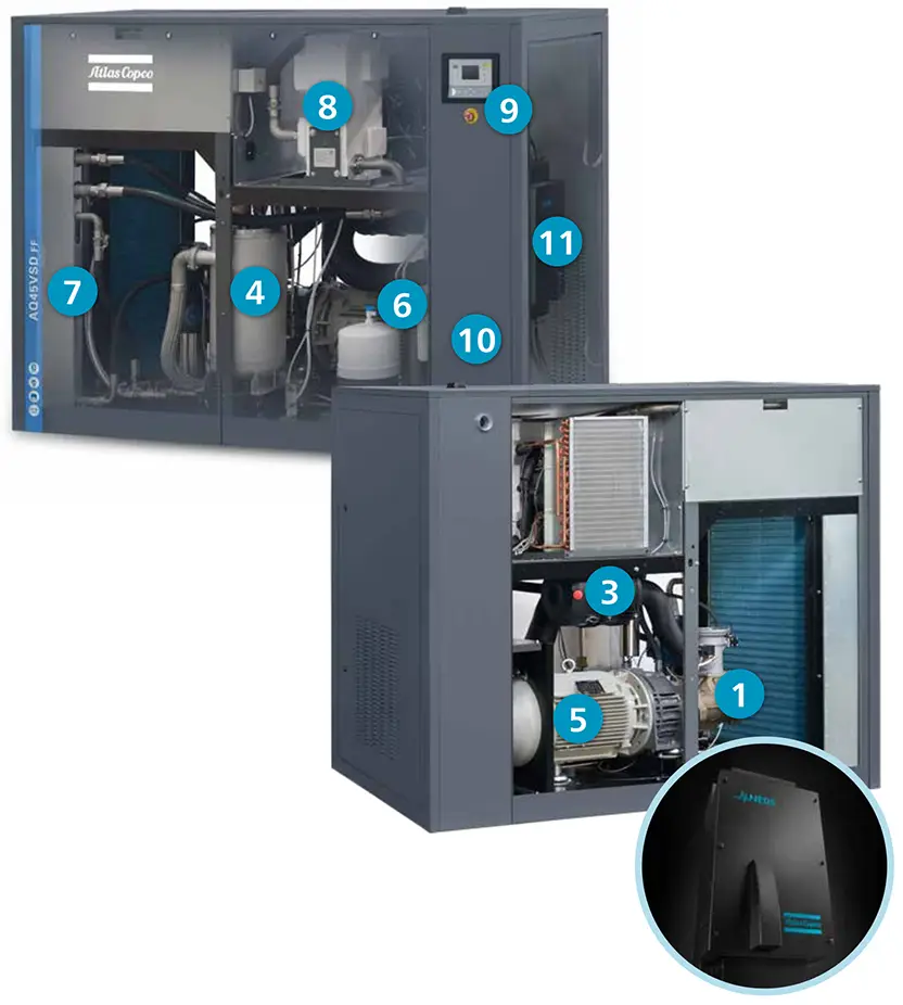 ● Pengawal pintar paparan warna Elektronikon° termaju direka untuk penyepaduan ke dalam sistem kawalan proses (jauh).